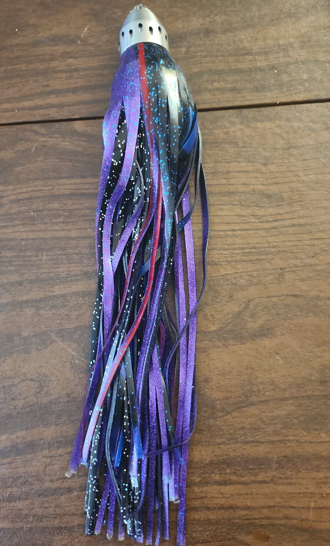 Includes 3 tails, pre-rigged and balanced. Heavy-duty design for open-ocean trolling. |
